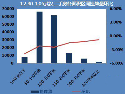 搜房網(wǎng)二手房數(shù)據(jù)監(jiān)控中心數(shù)據(jù)顯示,2013年12月30日-2013年1月5日,武漢二手房住宅各面積區(qū)間的掛牌量均有所下跌。其中跌幅最大的是50平米以下的房源,掛牌量為8205套,環(huán)比下跌3.84%;其次為100-150平米的房源,掛牌量為61567套,環(huán)比下跌2.43%。面積在50-100平米、150-200平米、200-300平米和300平米以上房源的掛牌量分別環(huán)比下跌了2.14%、1.47%、1.18%、0.79%。