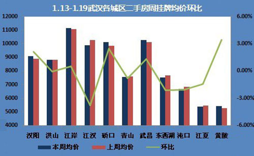 武漢二手房數據監控中心數據顯示,2014年1月13日-2014年1月19日,武漢二手各