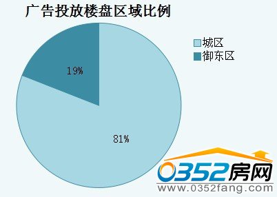 本周大同房地產廣告從投放區域來看,投放最多的區域是城區,達81%,御東區樓盤占比19%,其它區域基本沒有廣告投放。