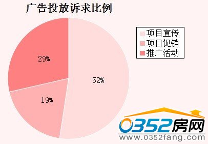 廣告中,訴求點是關鍵內容,在此次統計中,有半數多的樓盤投放信息是相關的項目介紹,其次是開發公司推廣活動,而其中項目銷售占少部分,這也和項目具體的銷售節點有關。