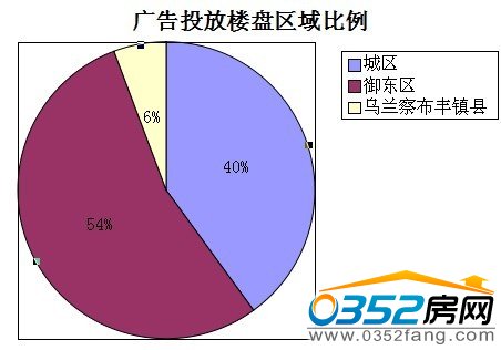本周大同房地產廣告從投放區域來看,投放最多的區域是御東區,達54%,城區樓盤占比40%,異地投放的有豐鎮縣的個別項目,其它區域基本沒有廣告投放。
