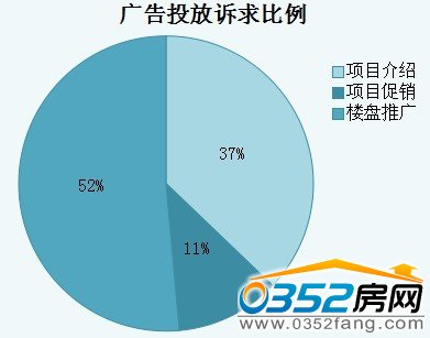 廣告中,訴求點是關鍵內容,在此次統計中,有半數多的樓盤投放信息是相關的樓盤推廣,其次是開發公司項目介紹,而其中項目銷售占少部分,這也和項目具體的銷售節點有關。