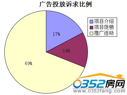 廣告中,訴求點是關鍵內容,在此次統計中,有半數多的樓盤投放信息是相關的推廣活動,其次是開發公司項目介紹,而其中也有項目銷售促銷、優惠占少部分,推廣活動成為項目整體行銷的關鍵,具體數據這也和不同項目具體的銷售節點有關。