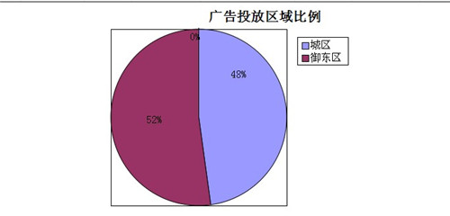御東12條,達(dá)52%,城區(qū)樓盤11條,占比48%,其它區(qū)域沒有廣告投放。