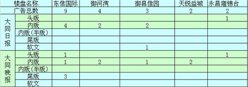 統(tǒng)計(jì)媒體:大同日?qǐng)?bào)、大同晚報(bào)、0352房網(wǎng)