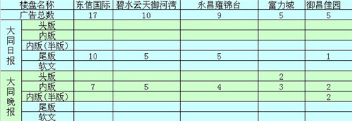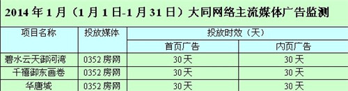 統(tǒng)計(jì)媒體:大同日?qǐng)?bào)、大同晚報(bào)、0352房網(wǎng)