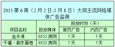 2015年第6周(2.2-2.8)大同樓市主流媒體監測
