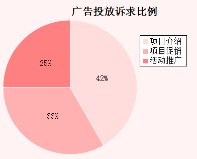 廣告中,訴求點是關鍵內容,在此次統計中,整體上看,廣告訴求落差很大,主要是項目介紹和樓盤項目促銷,其次是活動推廣,本期沒有人才招聘,廣告訴求通常和項目具體的