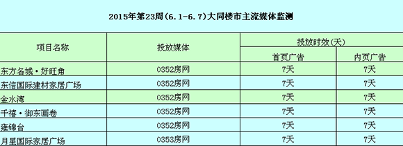 2015年第23周(6.1-6.7)大同樓市主流媒體監測