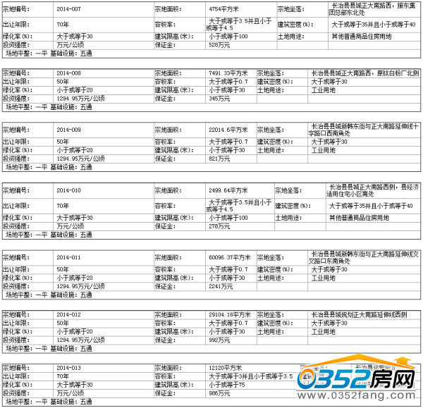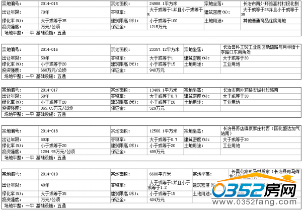 六、本次國有土地使用權公開公告活動定于2014年04月18日18時00分 在 長治縣土地礦業權交易大廳 進行。
