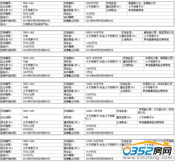 YBXG-1405 號地塊:2014年05月26日09時00分 至 2014年06月05日09時00分 ;