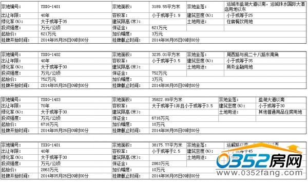 YDXG-1401 號地塊:2014年05月26日09時00分 至 2014年06月05日09時00分 ;