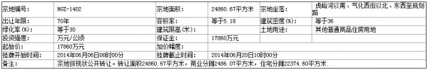 六、本次國有土地使用權(quán)掛牌活動 在 太原市國土資源交易事務(wù)中心(太原市金剛堰路2號太原國土大樓一層) 進行。各地塊掛牌時間分別為:HGZ-1402 號地塊:2014年06月06日08時00分 至 2014年06月20日10時00分 ;