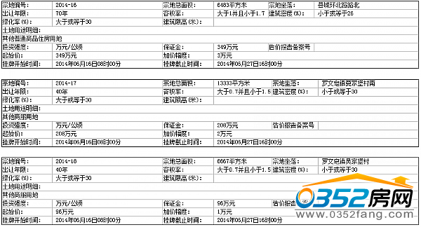 2014-18 號地塊:2014年06月16日08時00分 至 2014年06月27日16時00分 ;