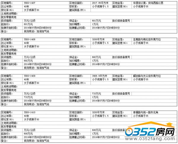 YBXG-1407 號地塊:2014年07月08日09時00分 至 2014年07月17日09時00分 ;