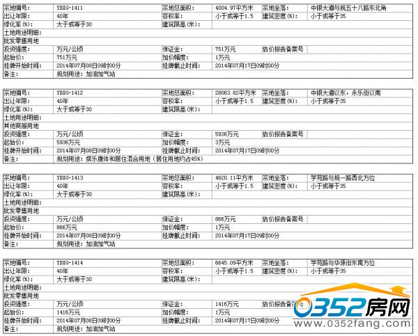 YBXG-1411 號地塊:2014年07月08日09時00分 至 2014年07月17日09時00分 ;