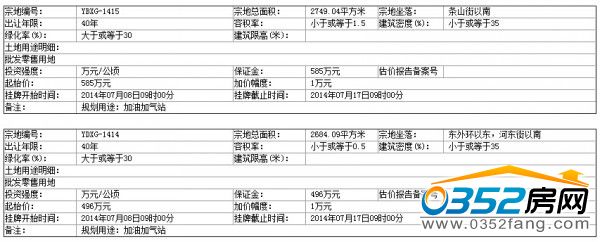 YBXG-1415 號地塊:2014年07月08日09時00分 至 2014年07月17日09時00分 ;