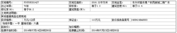 PYGTGP201427 號地塊:2014年07月14日08時00分 至 2014年07月23日16時00分 ;
