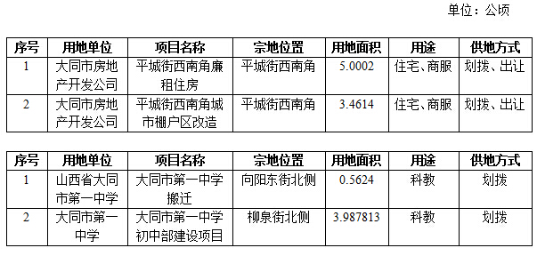根據(jù)《中華人民共和國土地管理法》和國地資源部有關(guān)政策之規(guī)定,以下宗地已經(jīng)由大同市人民政府批準(zhǔn),市國土資源局實(shí)施供應(yīng)。現(xiàn)將供應(yīng)結(jié)果公示如下,接受社會(huì)監(jiān)督。