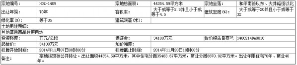 HGZ-1409 號地塊:2014年11月07日08時00分 至 2014年11月20日18時00分 ;
