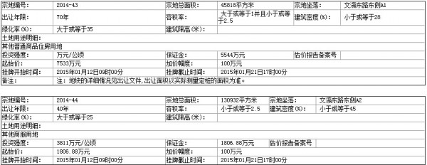 2014-43 號地塊:2015年01月12日09時00分 至 2015年01月21日17時00分 ;