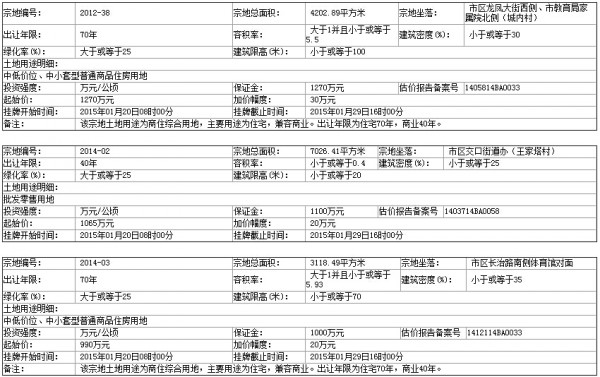 2012-38 號地塊:2015年01月20日08時00分 至 2015年01月29日16時00分 ;