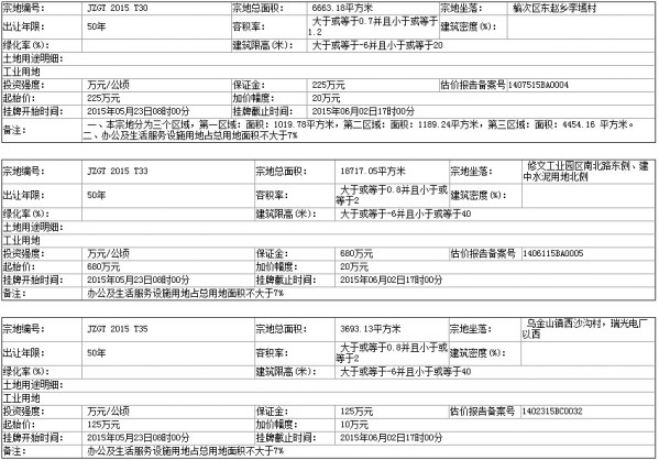 六、本次國有土地使用權掛牌活動在晉中市國土資源局一樓南大廳進行。各地塊掛牌時間分別為: