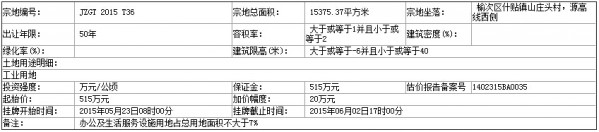 JZGT 2015 T36 號地塊:2015年05月23日08時00分 至 2015年06月02日17時00分 ;