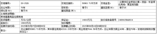 SG-1526 號地塊:2015年05月27日08時00分至2015年06月10日09時00分 ;