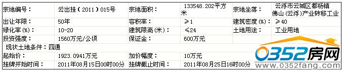 云出掛(2011)015號 號地塊:2011年08月15日00時00分 至 2011年08月25日16時00分 ;