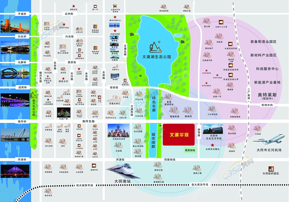 文瀛華庭位于大同市平城區南環東路與柳鶯路交匯處西南角,由大同錦泰置業發展有限公司和大同市辰名房地產開發有限責任公司聯合開發,項目總建筑面積107935.36㎡,總占地面積39869㎡。