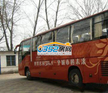 穿過小區到了售樓處,午后的售樓處也很安靜。旁邊還停放著一輛世界名園的班車,據我打聽,這輛班車每天早上7點半從小區中心出發前往公主墳地鐵站。恩,如果這樣,上下班有班車接送也不錯呢。