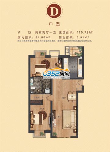 世界名園D戶型圖2室2廳1衛1廚110.72㎡
