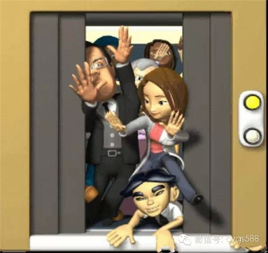第三、整個背部跟頭部緊貼電梯內墻,呈一直線。