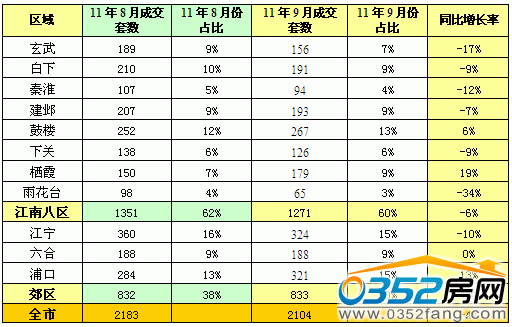 9月南京二手房市場整體表現平淡。門店房源量和客戶量同比2011年9月下跌幅度分別超過58%和62%。