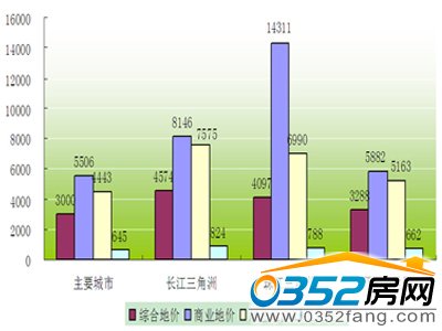 2011年第二季度,全國重點城市中,東部地區綜合地價平均水平最高,為6048元/平方米,明顯高于全國和中、西部地區重點城市平均水平;中部地區綜合地價水平均低于全國和東部地區重點城市平均水平,為2004元/平方米;西部地區綜合地價水平高于中部地區,但遠低于全國和東部地區,為2838元/平方米。