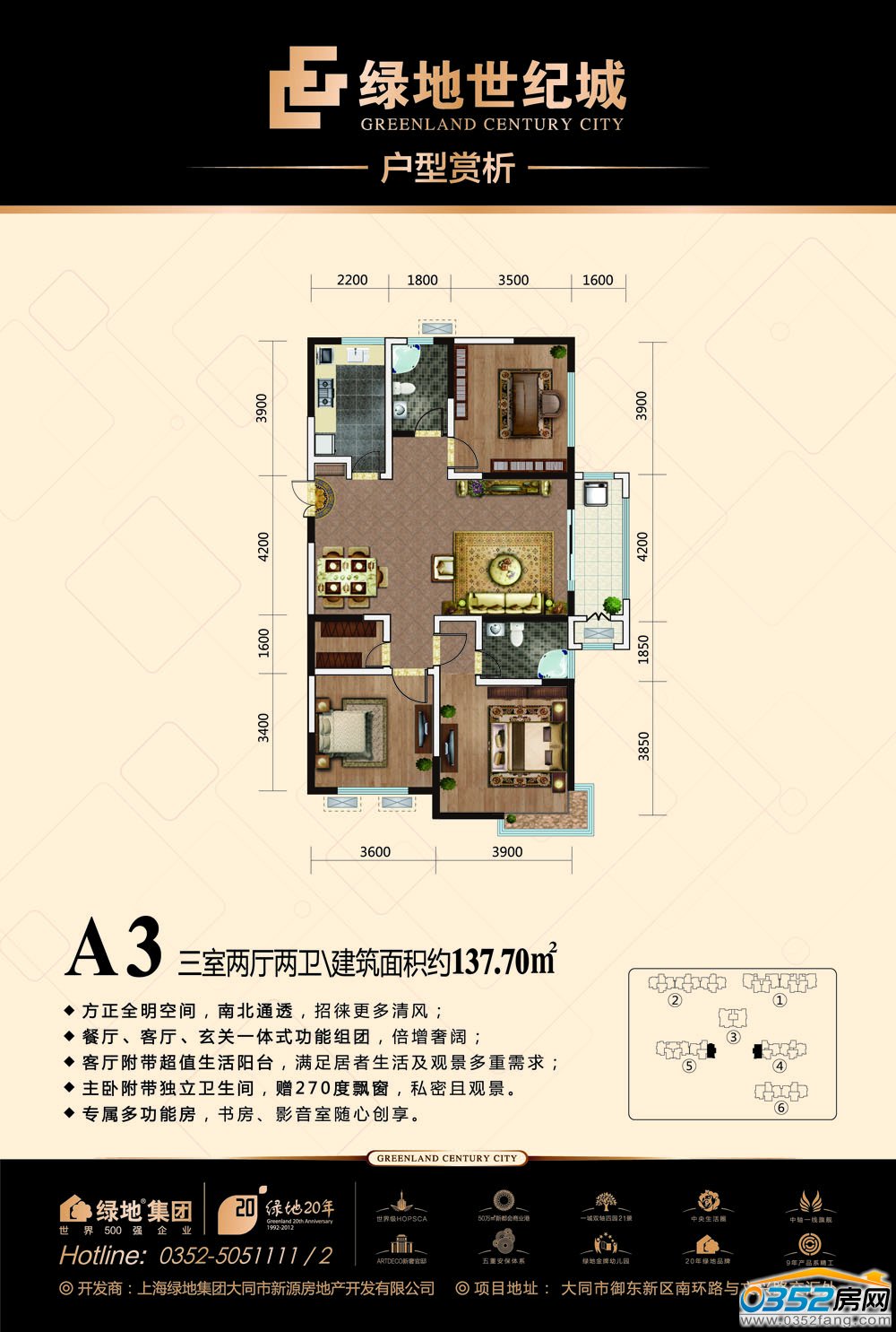 大同綠地世紀城位于大同市御東新區南環路與文興路交匯處,處于未來大同市行政、商業和居住中心區域,尚上之位,潛力無限。毗鄰成熟的商業區,星級酒店、餐飲、娛樂、休閑、醫療......全方位的公共服務為您的生活提供便利。 綠地集團,千億級地產航母,國有控股大型企業集團,2012年,從中國百強,千億級地產龍頭,到躋身世界500強,作為60城筑造專家,以20年造城經驗,為您打造完美生活!