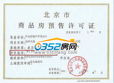 《商品房銷售(預售)許可證》正面(紅框中的預售范圍為本項目可銷售樓層,購房者務必看清購買樓層是否在預售范圍內)
