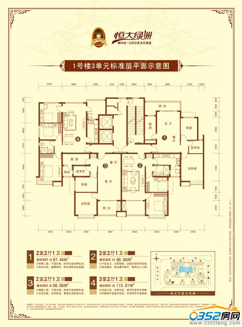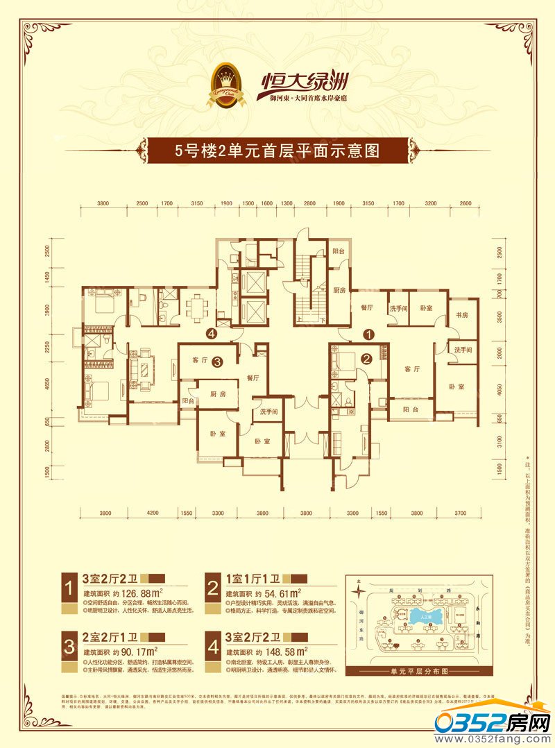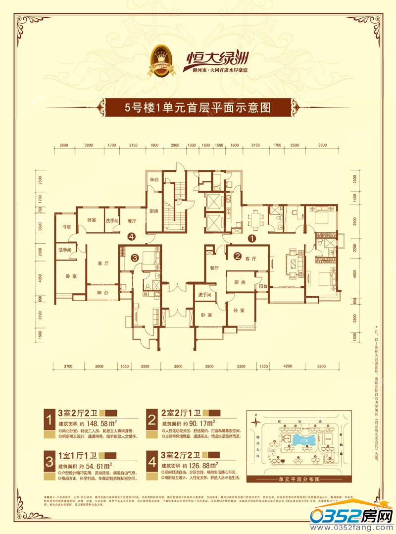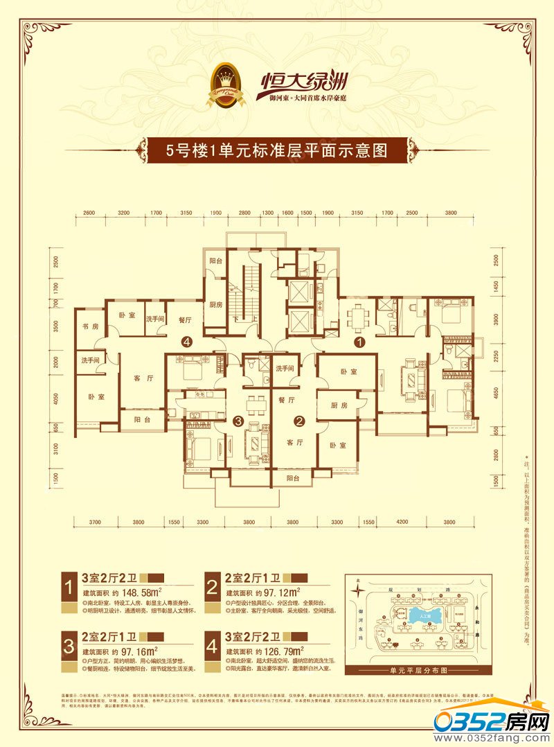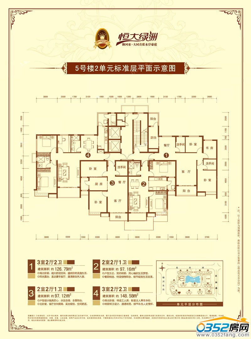 3室2廳2衛建筑面積約148.58㎡ 2室2廳1衛建筑面積約97.12㎡ 2室2廳1衛建筑面積約97.16㎡ 3室2廳2衛建筑面積約126.79㎡ |