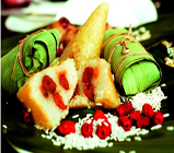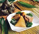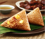 南方粽子的代表,個頭比北方粽子小很多,外型別致,正面方型,后面隆起一只尖角,形狀象錐子。餡料一般由雞丁、鴨丁、冬菇、綠豆等調配出來,葷素搭配。