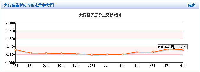 據0352房網數據中心有關大同在售新房均價走勢參考顯示,目前大同在售樓盤,2015年5月統計大同樓盤均價4342元/平米,6月份統計大同樓盤均價為4326元/平米。房價在2015年6月和5月相比,基本持平。