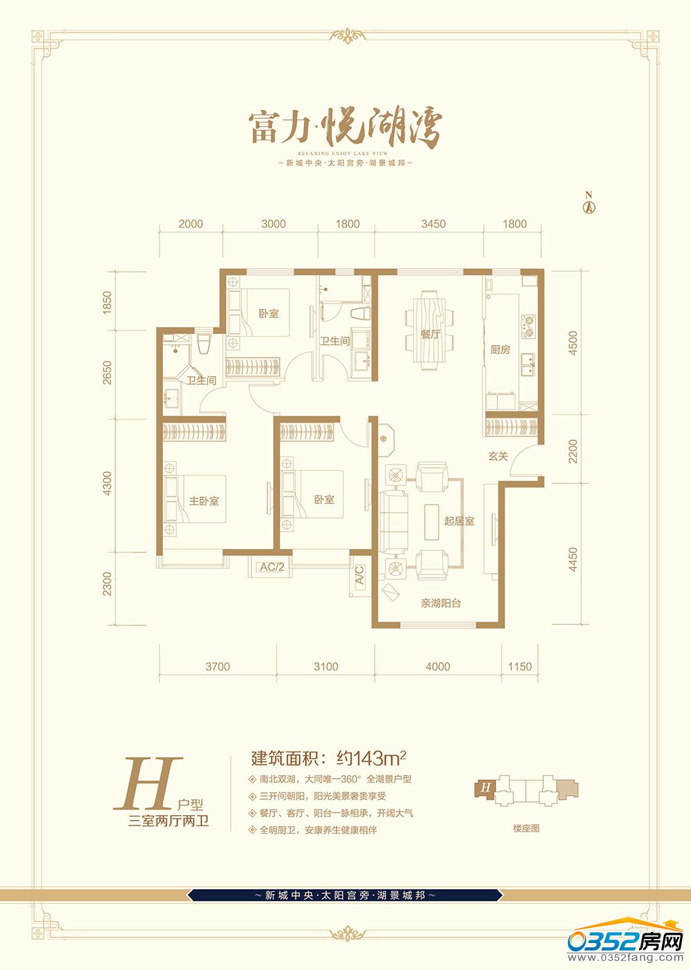 根據不同客戶的購房需求,經過4年的精耕細作,富力悅湖灣特推出92㎡-143㎡的高層戶型、176㎡的洋房戶型以及220㎡的別墅戶型。在戶型設計上,富力悅湖灣秉承生活空間最大化、不浪費分厘面積的理念,大大提升客戶的居住舒適度。富力悅湖灣的湖畔洋房,首創大同市四開間朝陽格局(即客廳與三臥均朝陽),讓業主的生活到處充滿風景!