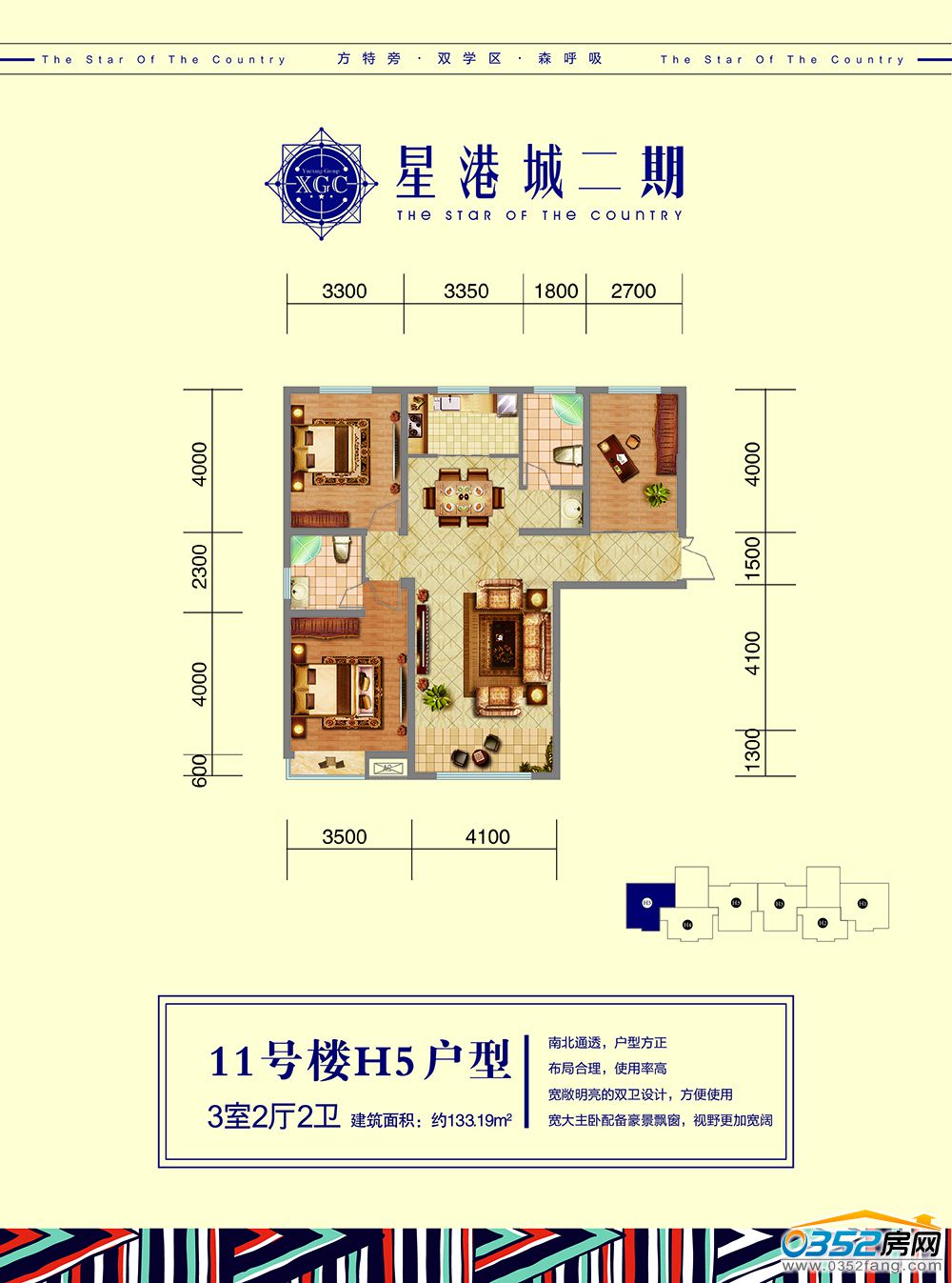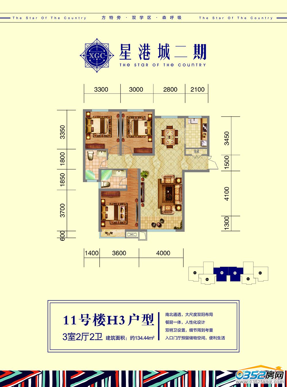 11號樓【H-3】戶型 3室2廳2衛 約133.44㎡