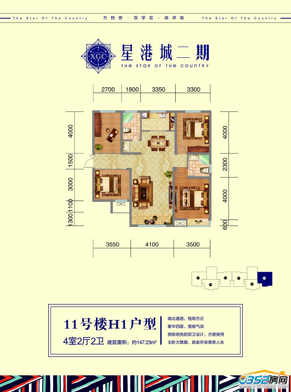11號樓【H-1】戶型 4室2廳2衛 約147.23㎡