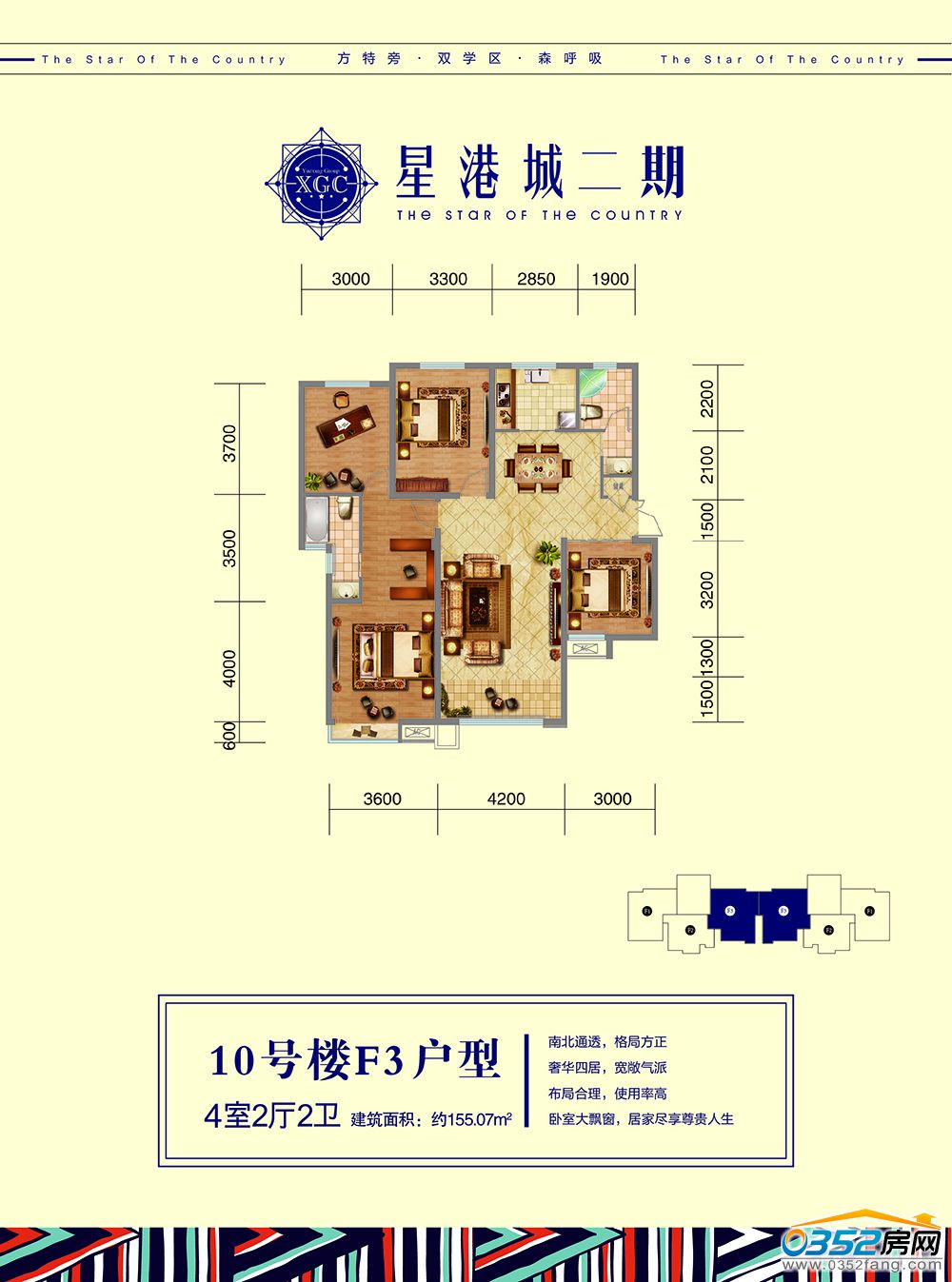 10號樓【F-3】戶型 4室2廳2衛 約155.07㎡