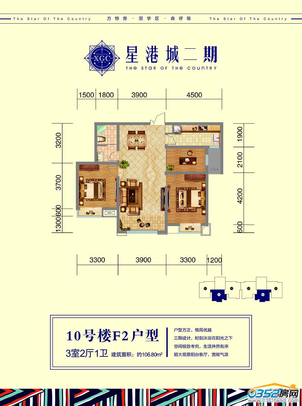 10號樓【F-2】戶型 3室2廳1衛 約106.8㎡