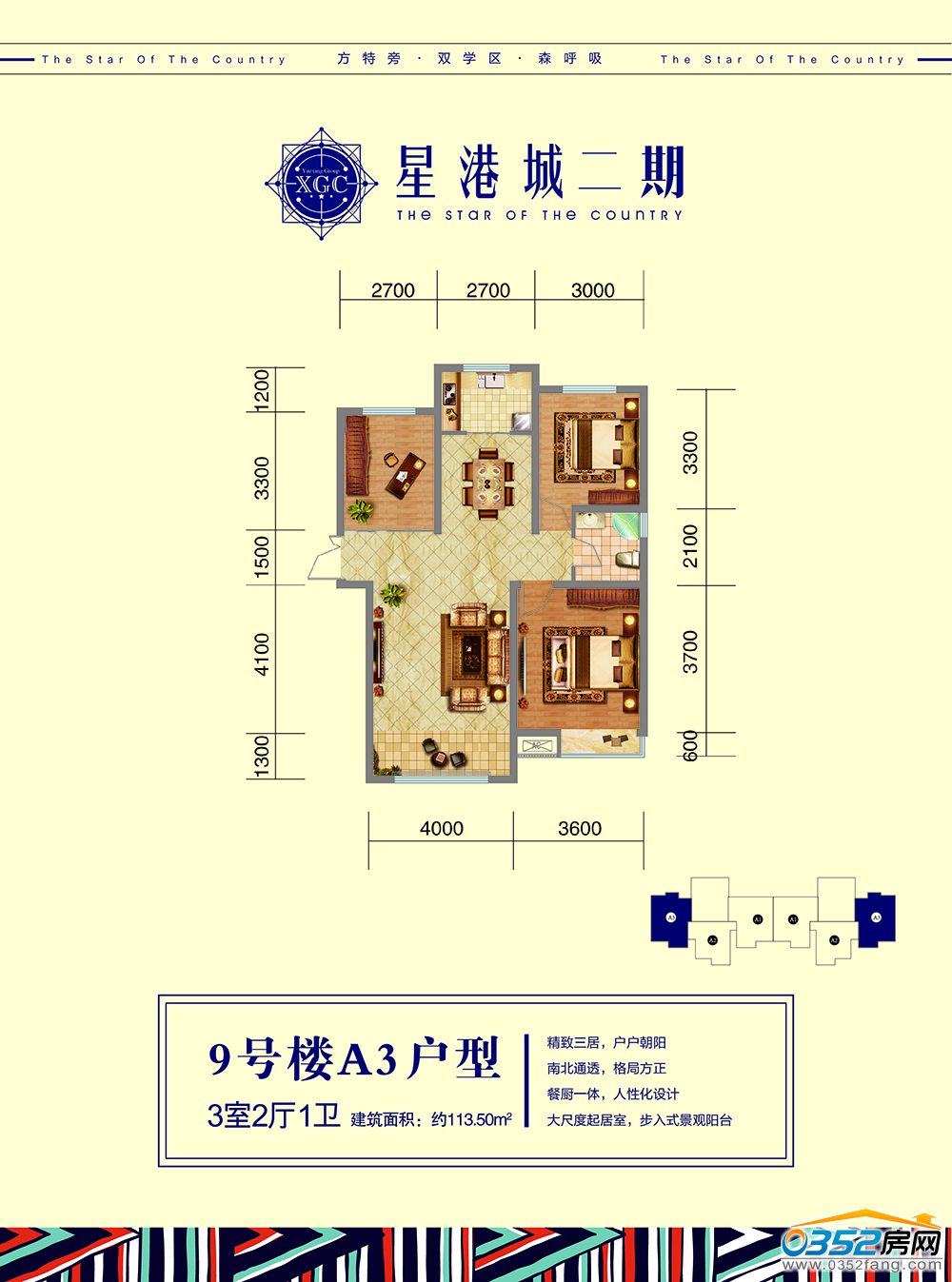 9號樓【A-3】戶型 3室2廳1衛 約113.5㎡