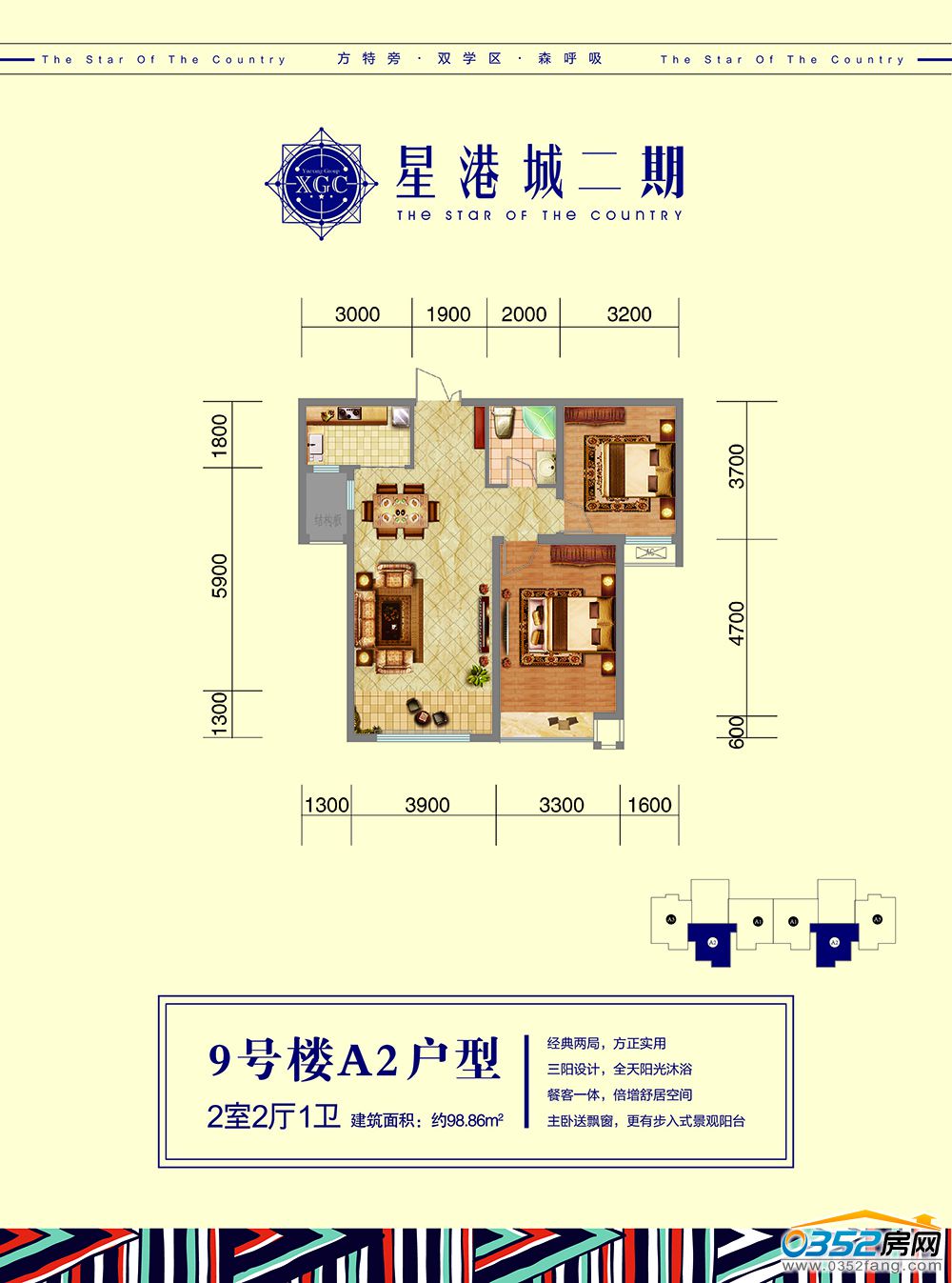 9號樓【A-2】戶型 2室2廳1衛 約98.86㎡