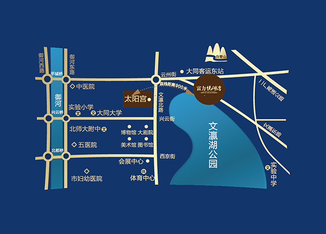 一軸雙城,古今兼顧,新舊兩利,大同富力富力城居于行政新中心,坐擁文瀛湖一線臻稀湖景,項目規劃總占地面積2200畝,是大同市目前為止規模最大的城市綜合體項目。旨在向大同人民禮獻一座集甲級寫字樓、星級酒店、菁英教育、專屬公交場站、大型文體中心、時尚商街等多重配套于一體的醉美湖景城邦。