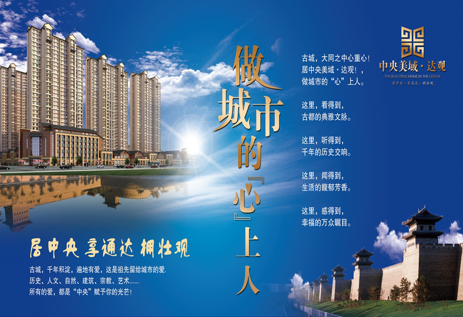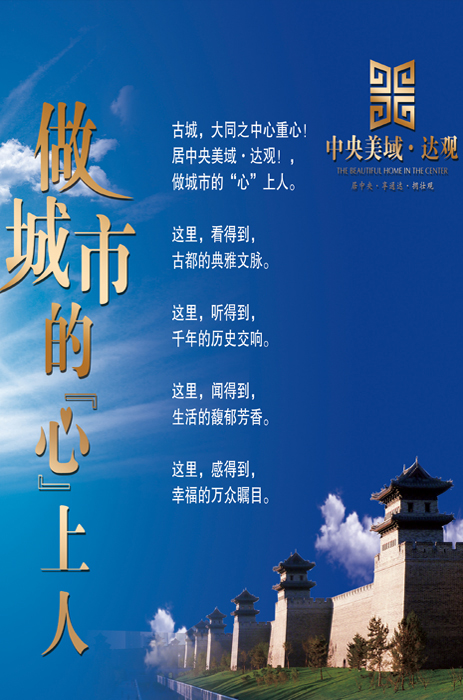 我們的項目,市政府高度關注:“一定要打造一流”。大同人也都在期盼這里的輝煌。所以,眾心所向,商街未建已繁榮。取名“未央”,意即“城之南,夜未央,繁華在路上”。具體而言,未央街與南城墻最繁華的一半相對,有眾心期盼的百姓基礎;有服務城市進步的政策支撐,獨特地段,合抱了古城墻、水街、南甕城廣場的旅游人潮,自然而成城南最核心的大商業街區——大氣、高端、豐富,堪稱大同市的王府井!